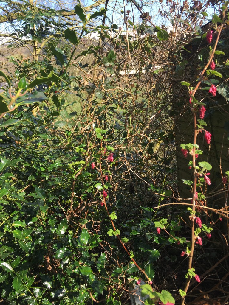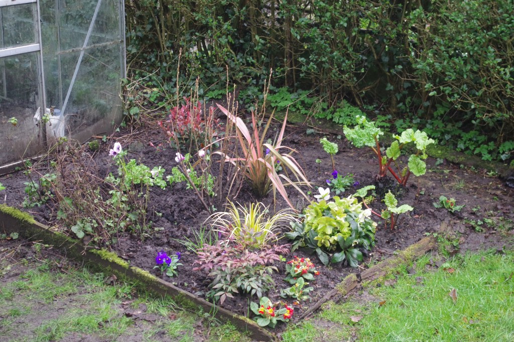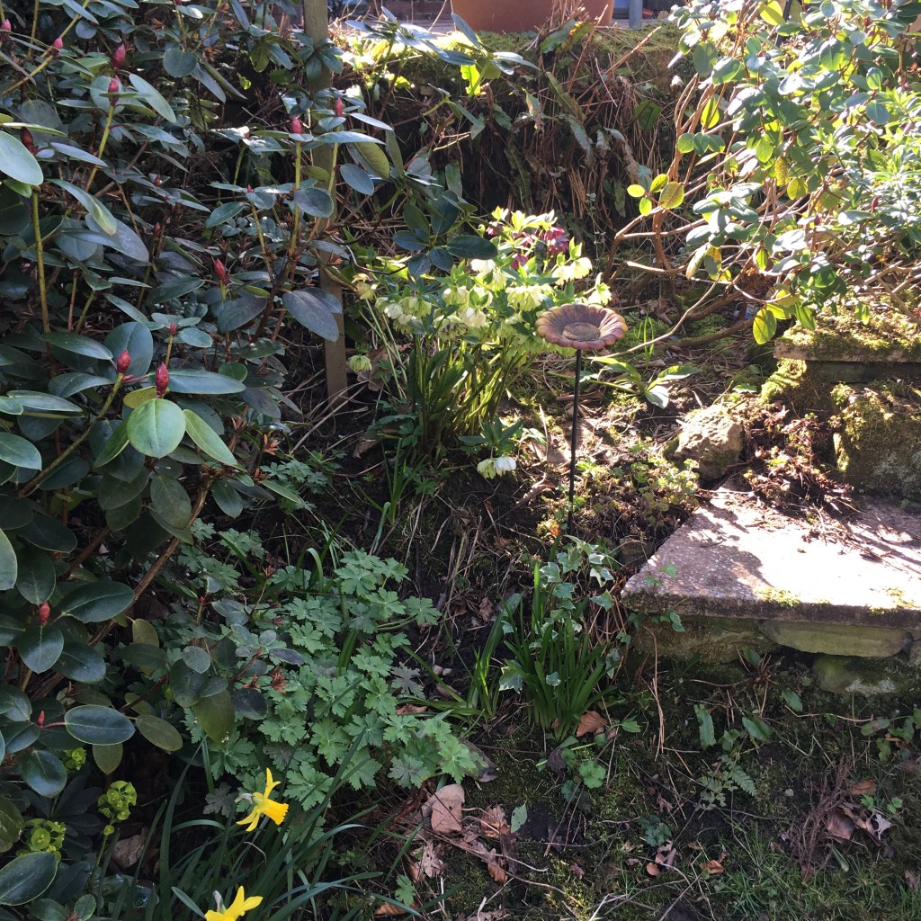 Around the garden there is still plenty to do. Weeds are springing into life just like the ‘wanted’ plants. March is a great time to reflect in the garden, enjoying some old favourites but making decisions to remove old plants which have become too big for a small garden and cut back trees and shrubs. A rule I have followed for almost 30 years, since working with Jack Swann at the Granada Arboretum, is that most trees survive a pruning of up to a third. So the deadwood on the lonicera has been removed. The time to make drastic action to reduce the amount of shade in the north facing border with the removal of an overgrown conifer from the top of the garden. The old herb garden is starting to gain some structure with the addition of ornamental grass – Acornus Ogon, a dwarf photinia ‘little red robin’ and anemometer ‘Harmony Pearl’.