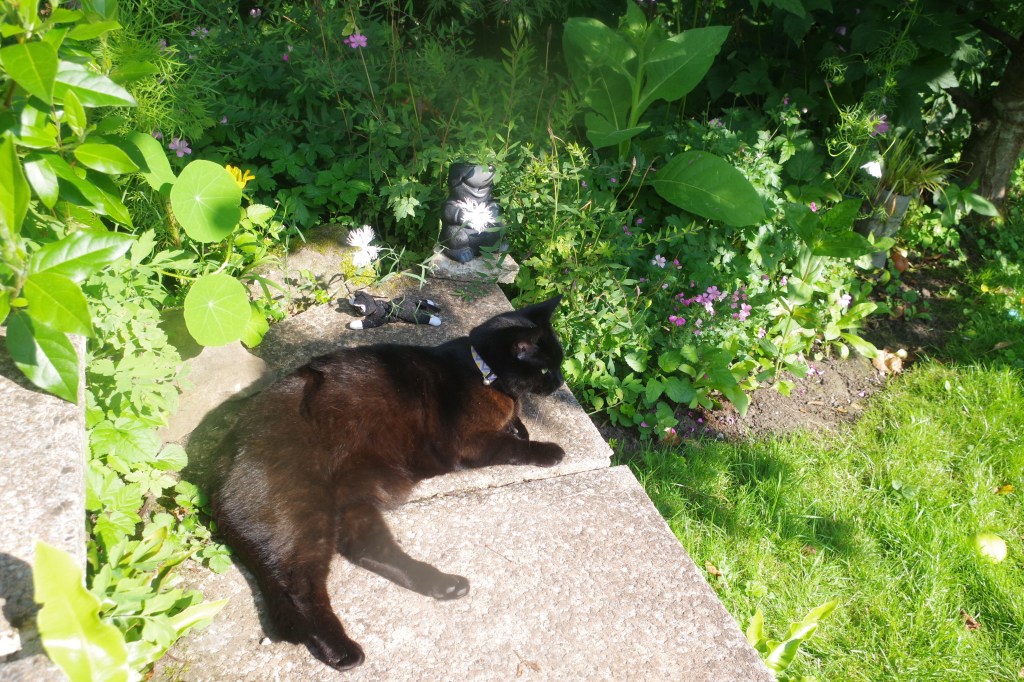 The ‘old herb garden’ is now totally transformed. A little overcrowded but full of colour. Even the sweat peas have started to bloom at the back of the plot. Pleasant surprises re the Astilbe, transferred from the overgrown patch at the top of the garden, and the Japanese Anemone, self seeded in my mum’s garden.