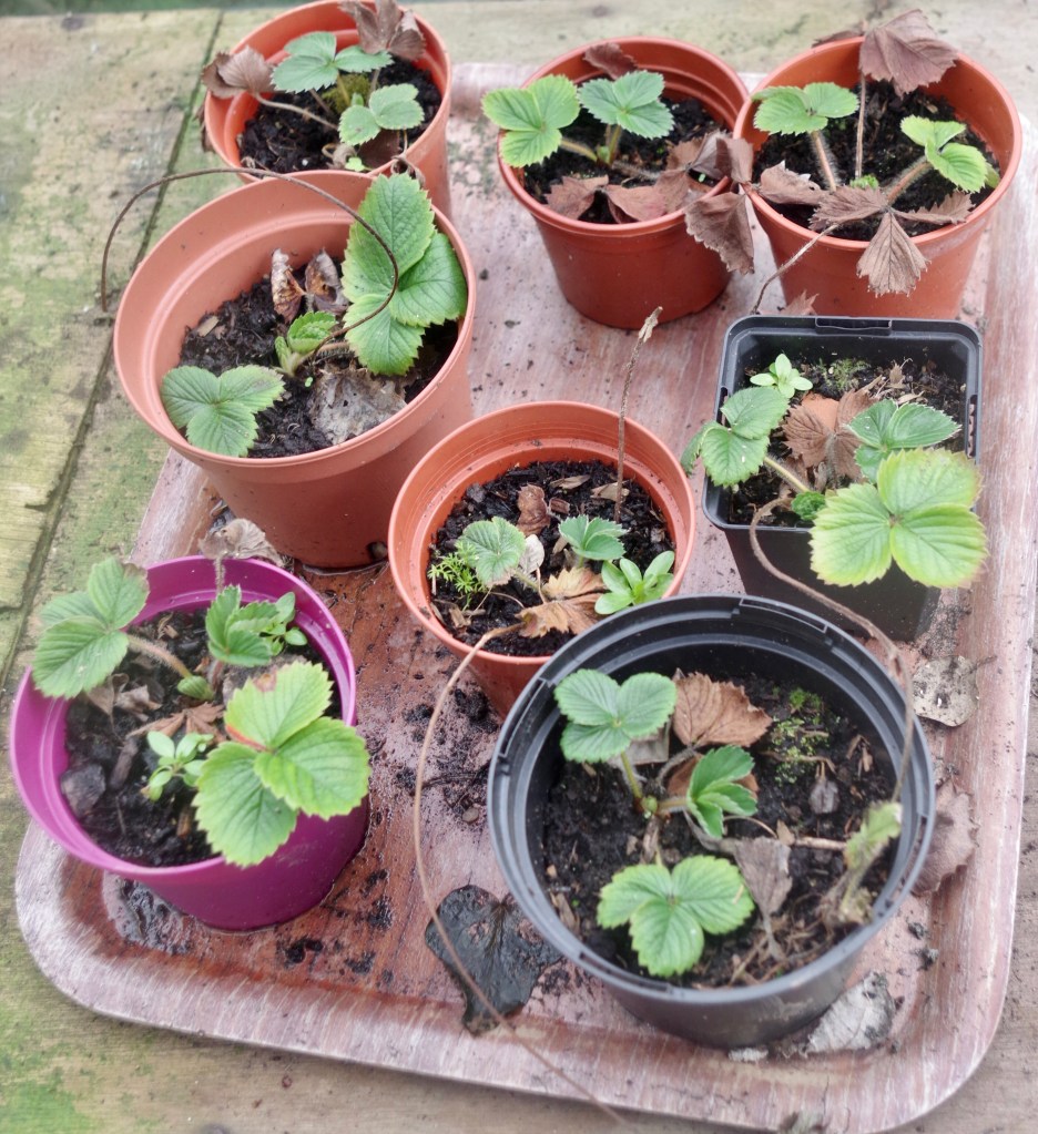 In the greenhouse last year’s baby strawberries have overwintered and new seedlings emerging. This year’s lettuce, cauliflower, broccoli and peas.