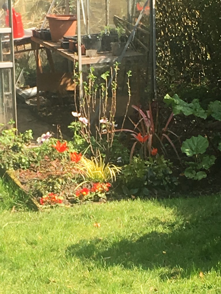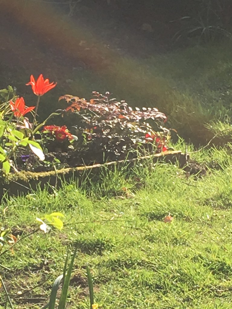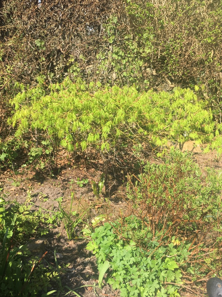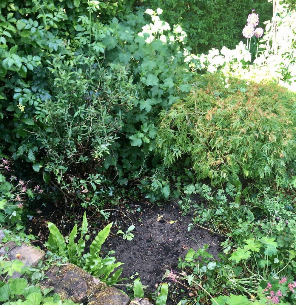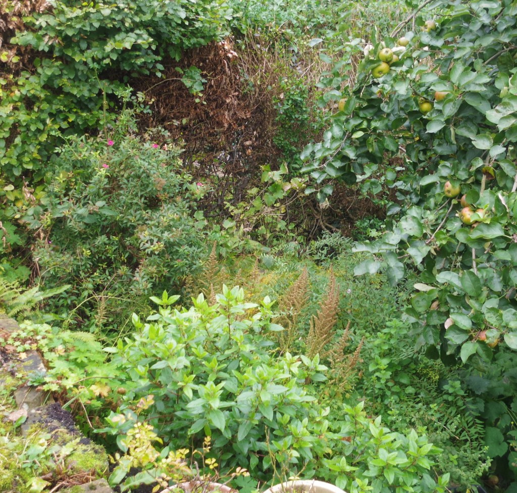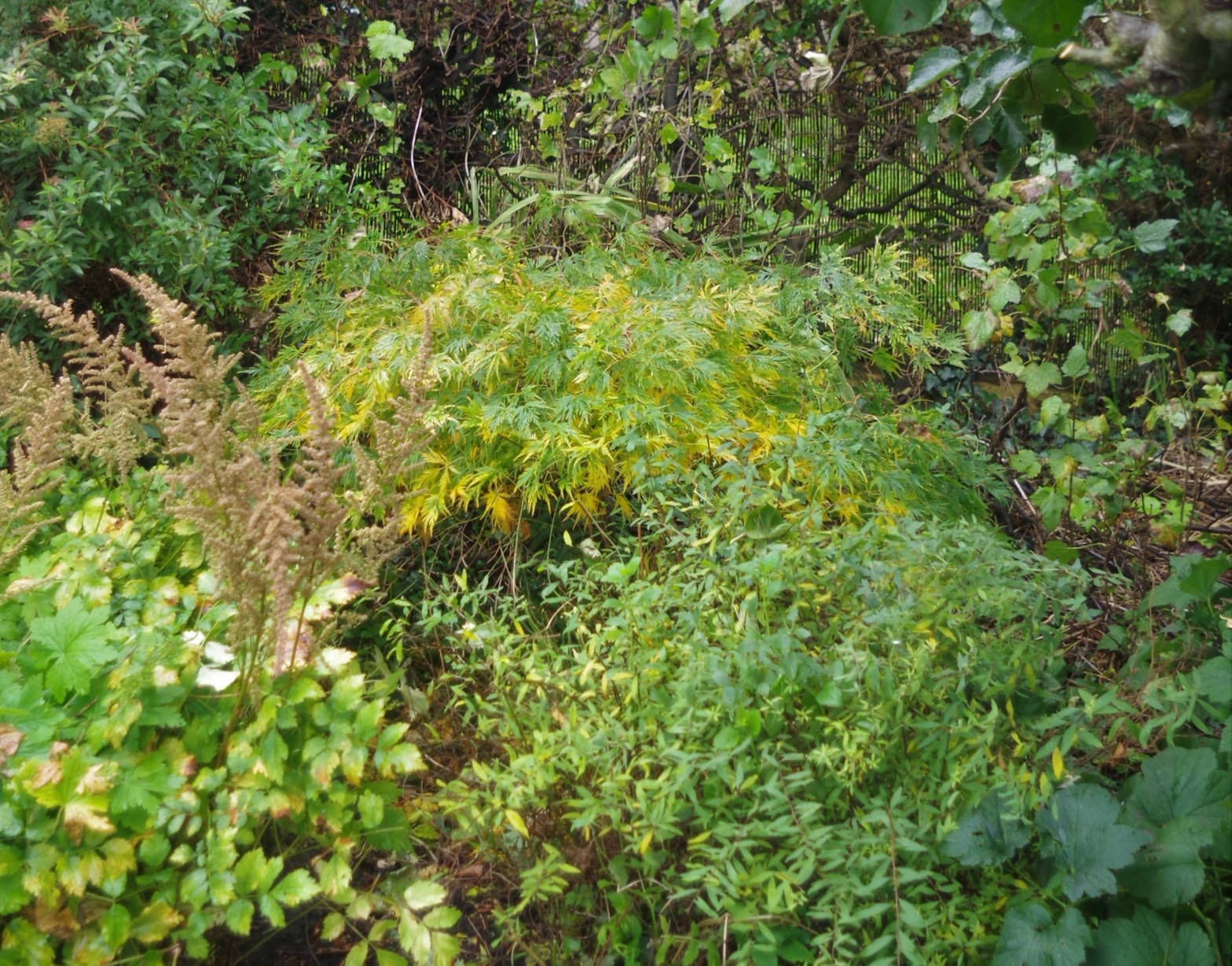 Somewhere in the top border is an Acer Palmatum – Autumn should be a show of its glorious orange leaves. But shaded under the overgrown apple tree branches and surrounding shrubbery its glory was hidden away.