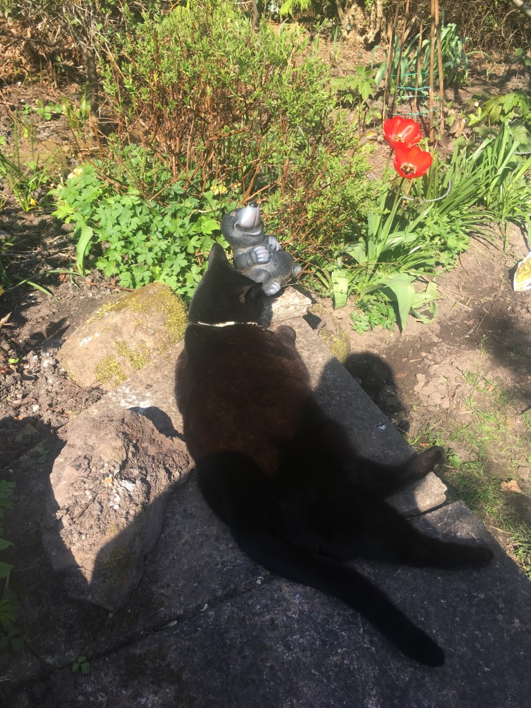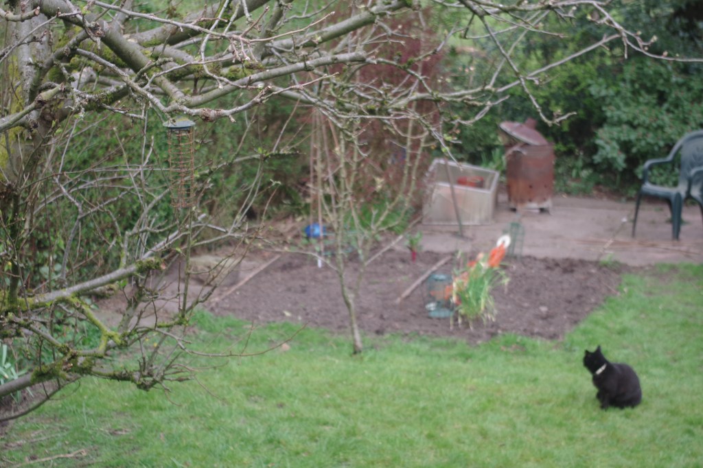 My supervisor, Salem the cat, watched on as I cleared away the undergrowth – ground elder, overgrown Astilbe, removed overhanging apple tree branches and cut back the spirea and lemon balm.